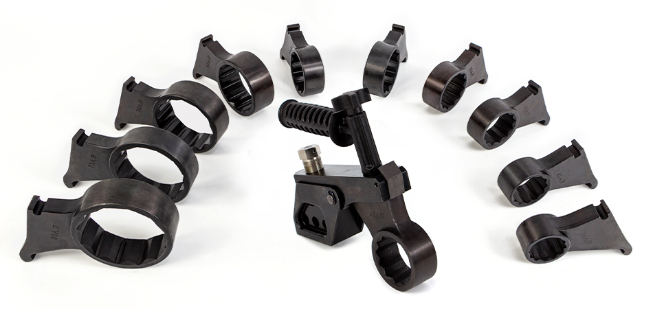 The RAD B.V. backup wrenches are available as a complete set or as a separate handle and cartridges.