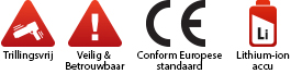 - Lithium-ion 18V / 5.2 Ah en 8.0 Ah accutechnologie